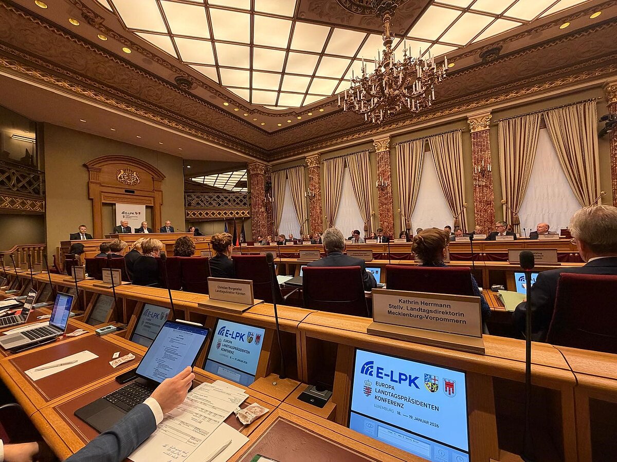 Die 1. Vizepräsidentin des Landtages Mecklenburg-Vorpommern, Beate Schlupp, hat am 18. und 19. Januar 2026 an der Europakonferenz der Präsidentinnen und Präsidenten der deutschen und österreichischen Landesparlamente (E-LPK) in Luxemburg teilgenommen. Begleitet wurde sie von Kathrin Herrmann, der stellvertretenden Direktorin des Landtages Mecklenburg-Vorpommern.