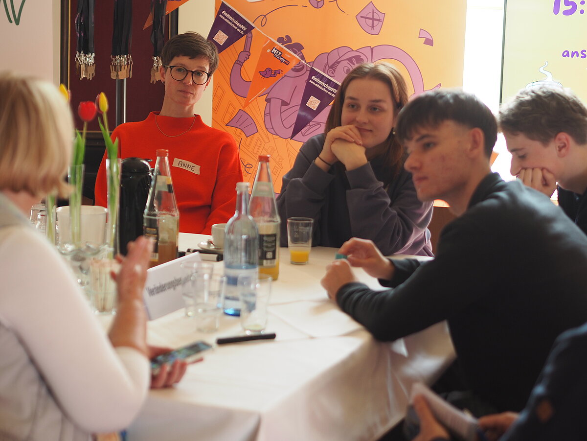 Im Anschluss startete der Austausch in sogenannten World-Café-Runden. In einem rotierenden System diskutierten die Teilnehmenden an vier Tischen jeweils eine halbe Stunde lang über die Themen Renten- und Sozialsystem, Klimawandel und Nachhaltigkeit, Infrastruktur und Staatsschulden sowie die Veränderungsbereitschaft der Gesellschaft. Ziel war es, Herausforderungen zu identifizieren, Visionen zu entwickeln und Handlungsempfehlungen für die Politik zu formulieren.