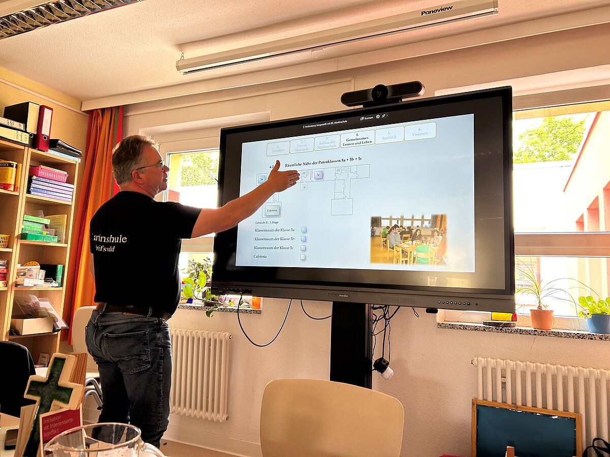 Zunächst hat der Schulleiter die Entwicklung der Schule von einer Förderschule hin zu einem Schulzentrum bestehend aus einer Schule zur individuellen Lebensbewältigung (Förderschwerpunkt geistige Entwicklung), einer Grundschule mit Hort und einer Integrierten Gesamtschule mit gymnasialer Oberstufe dargestellt. Die Martinschule startete am 1. Januar 1992 als Förderschule mit 24 Schülerinnen und Schülern aufgeteilt auf drei Klassen. Schon im darauffolgenden Schuljahr hat sich die Zahl der Schülerinnen und Schüler mehr als verdoppelt. Im Schuljahr 2002/2003 ist unter dem Dach des Evangelischen Schulzentrums Martinschule dann eine Grundschule gegründet worden und 2006 kam die Integrierte Gesamtschule mit gymnasialer Oberstufe hinzu. In diesem Schuljahr besuchen 613 Kinder das Schulzentrum Martinschule. Leitsatz der Schule sei, dass jeder gleich wichtig sei, egal, was er leiste und wisse. Aufgrund dessen sei die Martinschule kindorientiert und richte sich danach aus, was die Kinder benötigten. So sei der Slogan der Schule auch „Selbstverwirklichung im sozialen Miteinander für eine bessere Welt“. Das bedeute, dass es sowohl um die Individualität des Einzelnen, als auch um das Miteinander gehe, so der Schulleiter der Martinschule Benjamin Skladny.