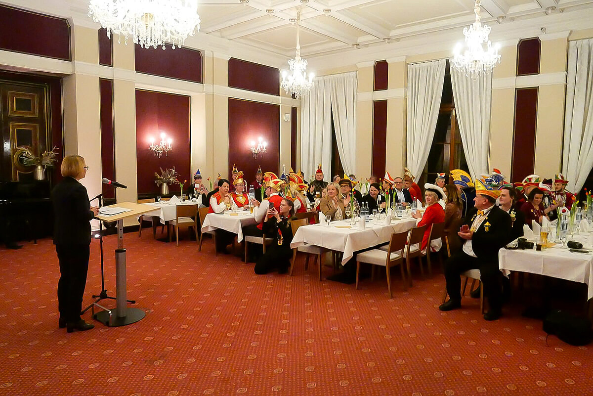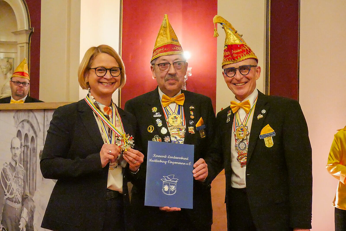 Landtagspräsidentin Birgit Hesse empfing am gestrigen Abend im Café Niklot im Schweriner Schloss Vertreterinnen und Vertreter des Karneval-Landesverbandes Mecklenburg-Vorpommern (KLMV). Die Veranstaltung gab Einblicke in die karnevalistische Tradition des Landes - begleitet von einem abwechslungsreichen Programm.