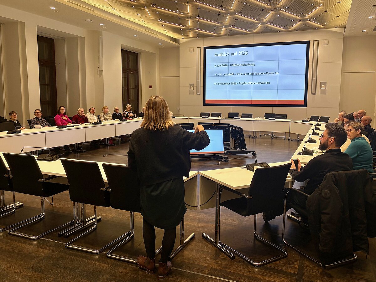 Am Dienstag (16. Dezember 2025) waren Schlossführerinnen und Schlossführer zu einer Weiterbildung in den Demmlersaal des Schweriner Schlosses eingeladen. Im Mittelpunkt stand dabei das Thema „Welterbe“. Es wurde ein Rückblick auf das Jahr 2025 sowie ein Ausblick auf das Jahr 2026 gegeben, wie zum Beispiel auf den Unesco Welterbetag am 7. Juni 2026.