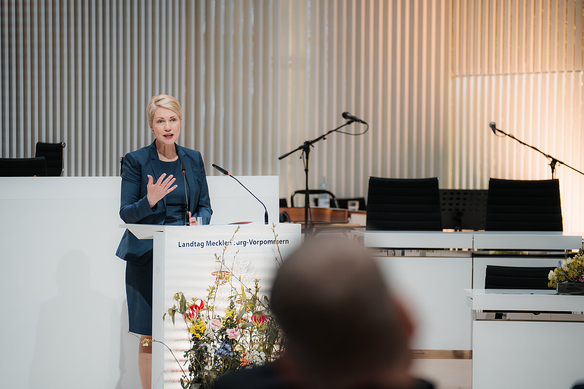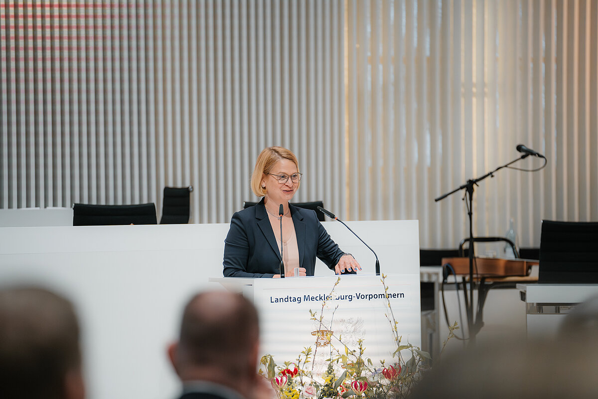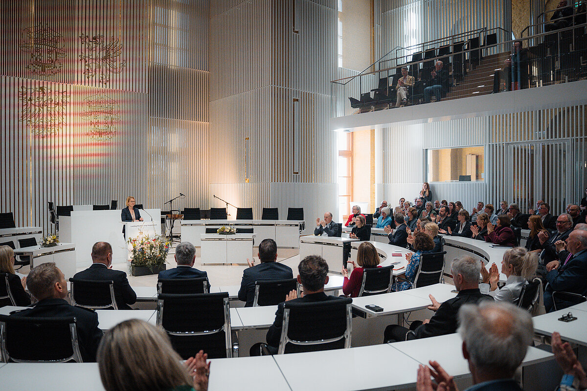 In ihrer Rede betonte Landtagspräsidentin Birgit Hesse die Bedeutung des kulturellen Erbes: „Die Bewerbung um den Welterbe-Titel ist ein Musterbeispiel gelebter Demokratie. Bürgerinnen und Bürger gaben eine Anregung, die von der Politik aufgegriffen und dann von allen Beteiligten gemeinsam zum Erfolg geführt worden ist. Das passt ganz wunderbar dazu, dass das Schweriner Schloss Mittelpunkt des Residenzensembles und zugleich zentraler Ort der Demokratie unseres Bundeslandes ist. Beides ist in unserem lebendigen Welterbe erfahrbar.“