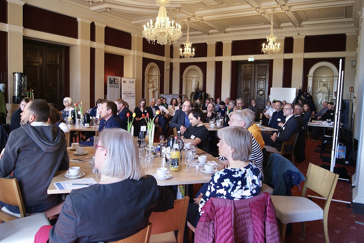 Danach stellten Vertreterinnen und Vertreter verschiedener Organisationen ihre Aktivitäten sowie Kampagnen vor der Landtagswahl vor und diskutierten Möglichkeiten der Zusammenarbeit auf regionaler Ebene. In mehreren Austauschformaten konnten Kontakte vertieft und neue Kooperationen angestoßen werden. Auch der Wahlaufruf zur Landtagswahl 2026 wurde vorgestellt.