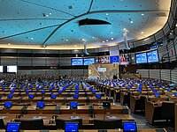 Leerer Plenarsaal des Landtags Mecklenburg-Vorpommern mit modernen, halbrund angeordneten Tischen und schwarzen Drehstühlen vor einer hellen Lamellenwand mit hohen Fenstern Nach rund 11-stündigen Beratungen ist am gestrigen Donnerstag (26. September 2024) der zweite von insgesamt drei Sitzungstagen des Landtages Mecklenburg-Vorpommern in dieser Woche gegen 21.15 Uhr zu…