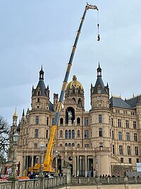 Am heutigen Donnerstag (8. Februar 2024) ist der Erzengel mit einem Kran von der Prunkkuppel des Schweriner Schlosses zu Boden transportiert worden. Die goldene Zinkgussfigur wird in den kommenden…