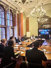 Demmlersaal im Schweriner Schloss Der Wirtschaftsausschuss hat sich in seiner 3. Sitzung am 20. Januar 2022 durch den Wirtschaftsminister zum "Flughafen Rostock-Laage, insbesondere zum Verkauf der Flughafen Rostock-Laage-Güstrow GmbH…