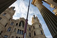 Sommerpause im Parlament - aber keine Pause bei den Bauarbeiten am Schweriner Schloss. Die Fassadensanierung im Innenhof geht zügig voran. So ist das Dach des Burggartenflügels auf der Innenhofseite…